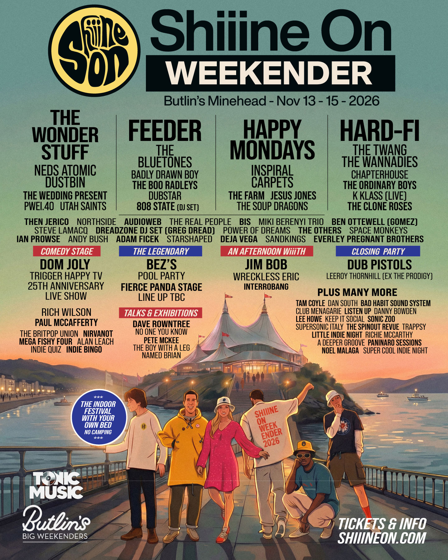 This isn't a field festival. Shiiine On is the UK's ultimate all-indoor indie & dance weekender — three nights at Butlin's Minehead with your accommodation included in the ticket price. With 80 acts over 5 stages, 11 years in and it just keeps getting bigger.